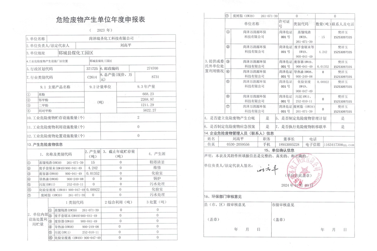 菏澤瑞圣化工科技有限公司是2011年鄆城縣招商引資項(xiàng)目,地處鄆城縣煤化工園區(qū),是一家從事粗酚深加工企業(yè)。公司環(huán)境好,待遇優(yōu)厚。
