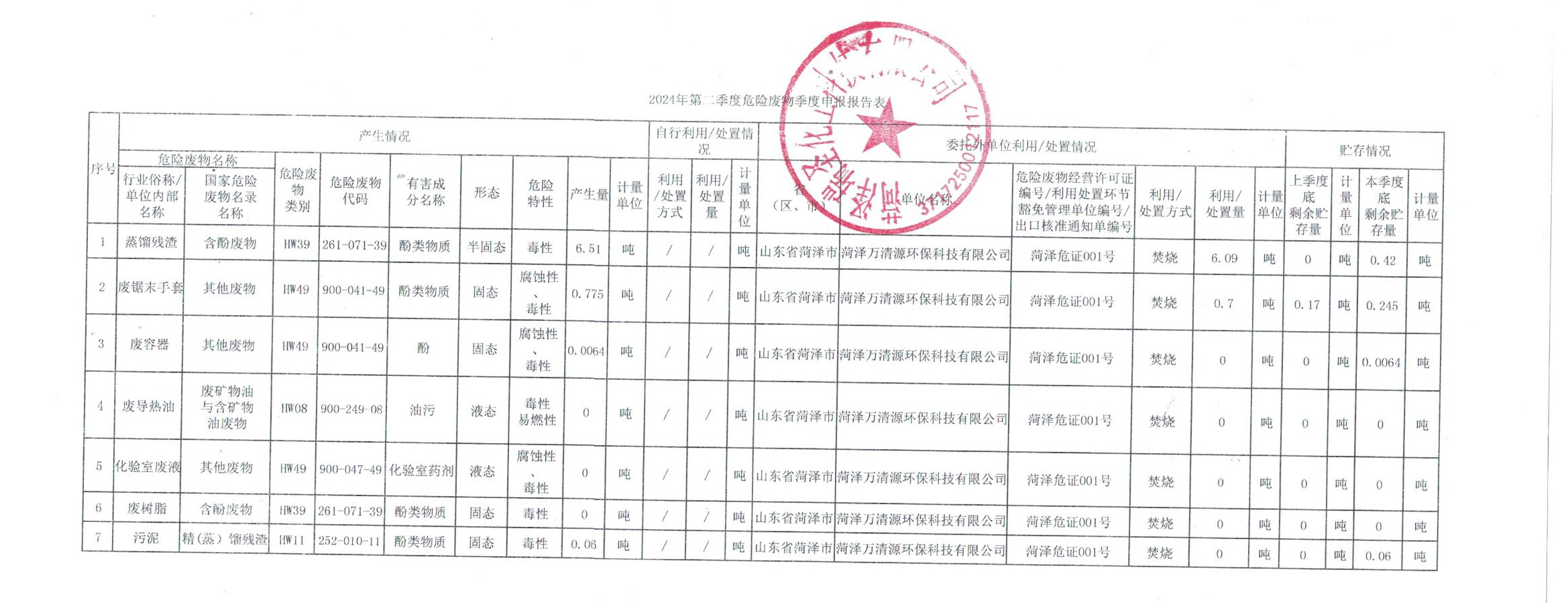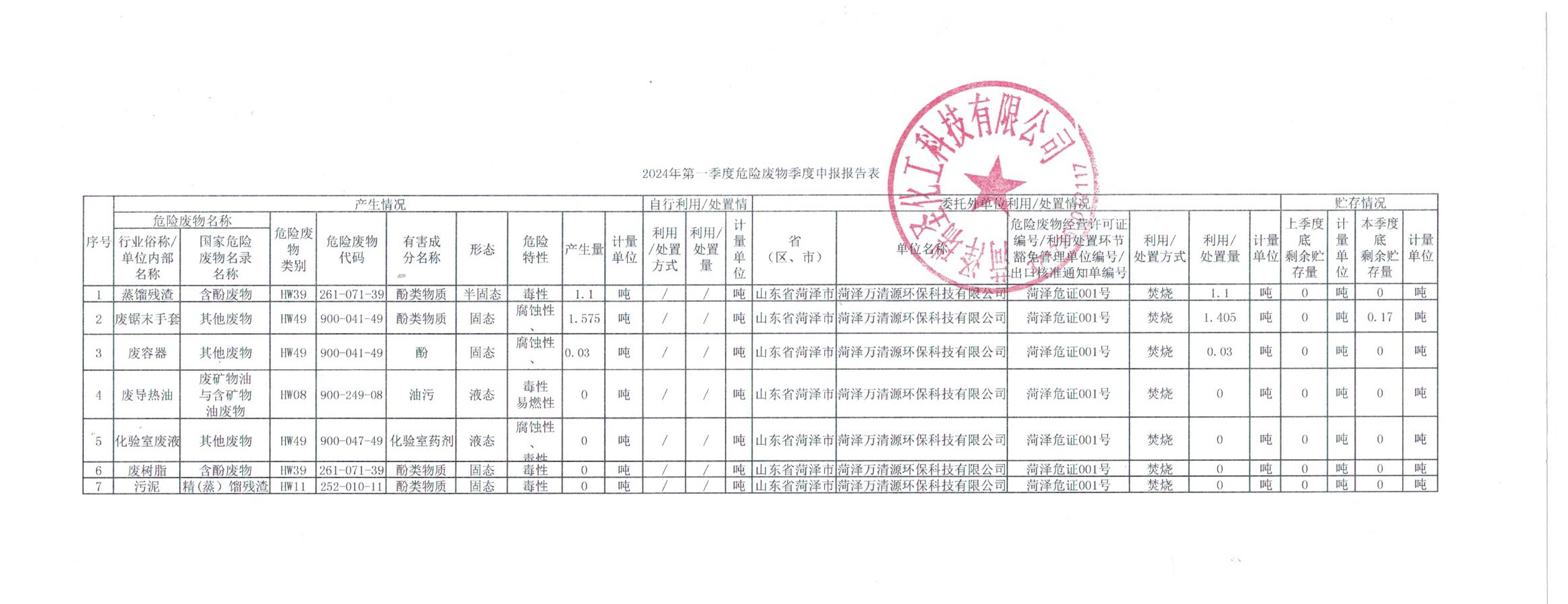 危險(xiǎn)廢物申報(bào)報(bào)告表